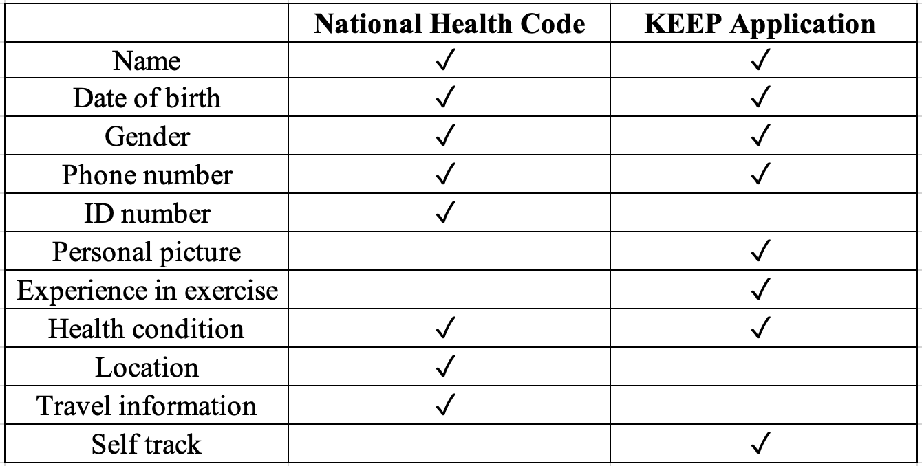 The differences and commonalities in the data collection by the Health Code and KEEP application are needed to determine the variations.